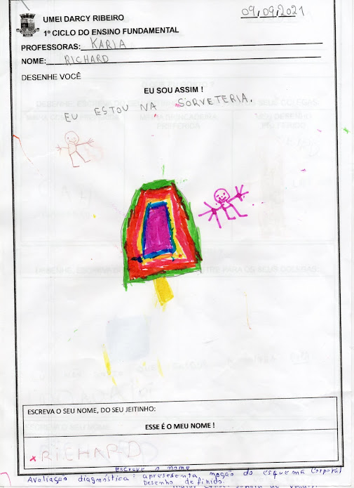 Avaliação inicial dos níveis de escrita, desenvolvimento do grafismo(desenho),